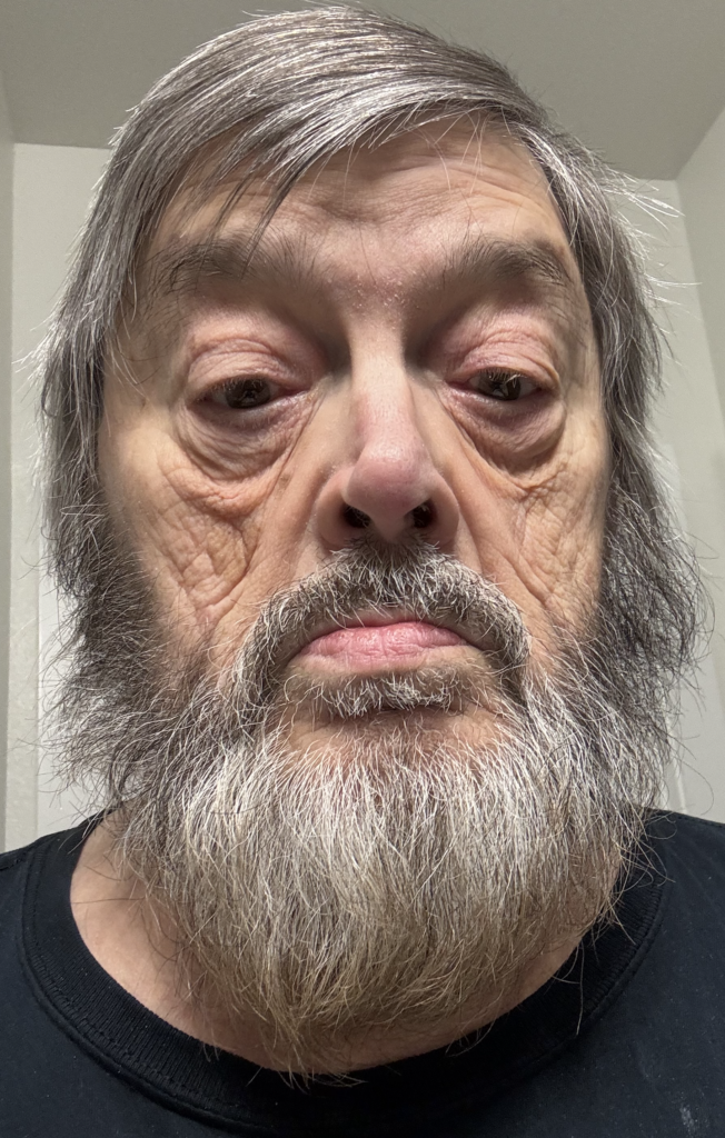 At any rate, a lot of years have passed and most of them show in the lines of my face and the white hair in my beard. My picture on my Facebook account was a few years old, so I took a selfie the other day that showed how I look right now.